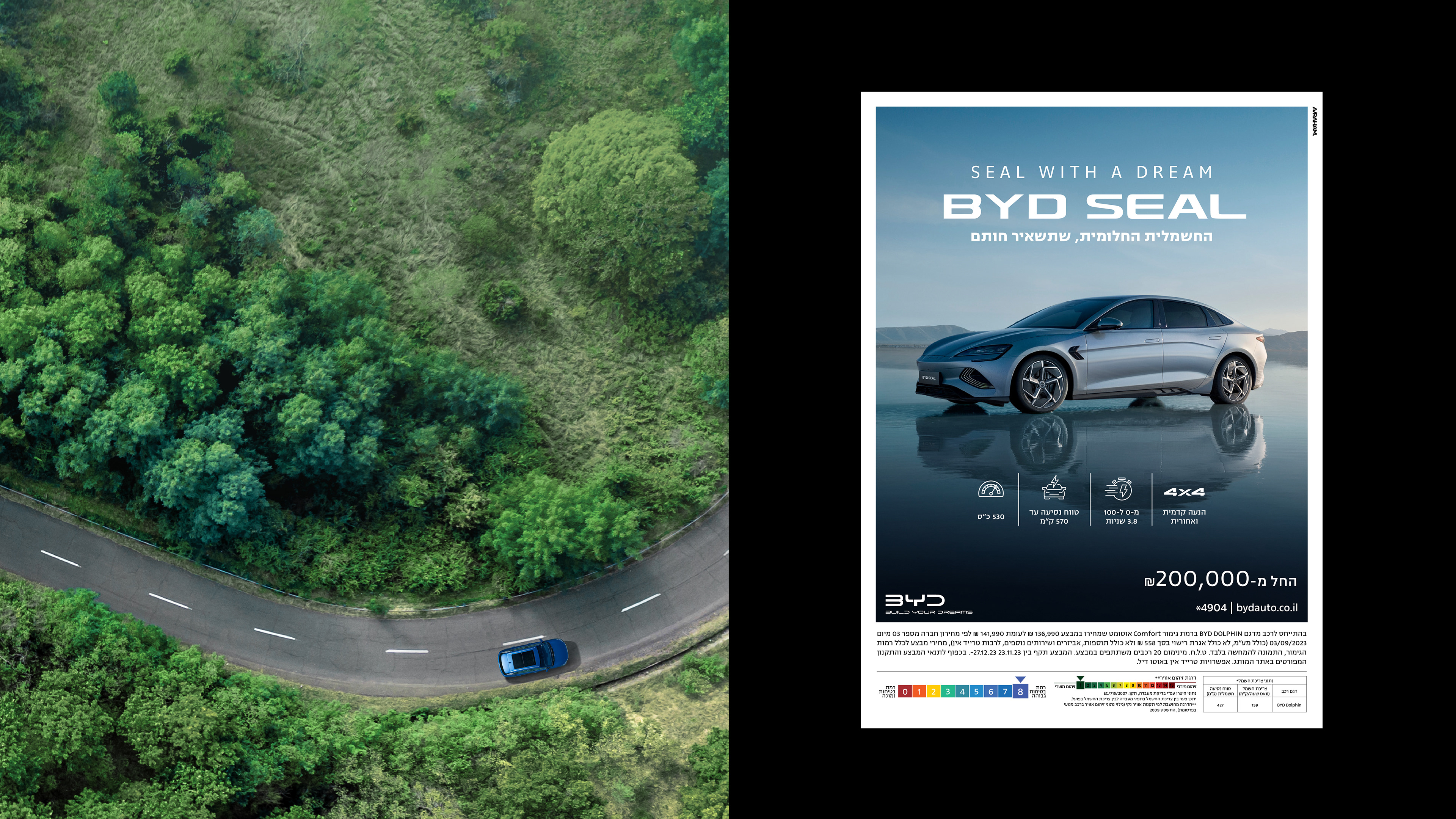 Art Direction, concept development and graphic design - including a TV commercial, stills, media and digital for BYD, as a part of Avraham's creative team.